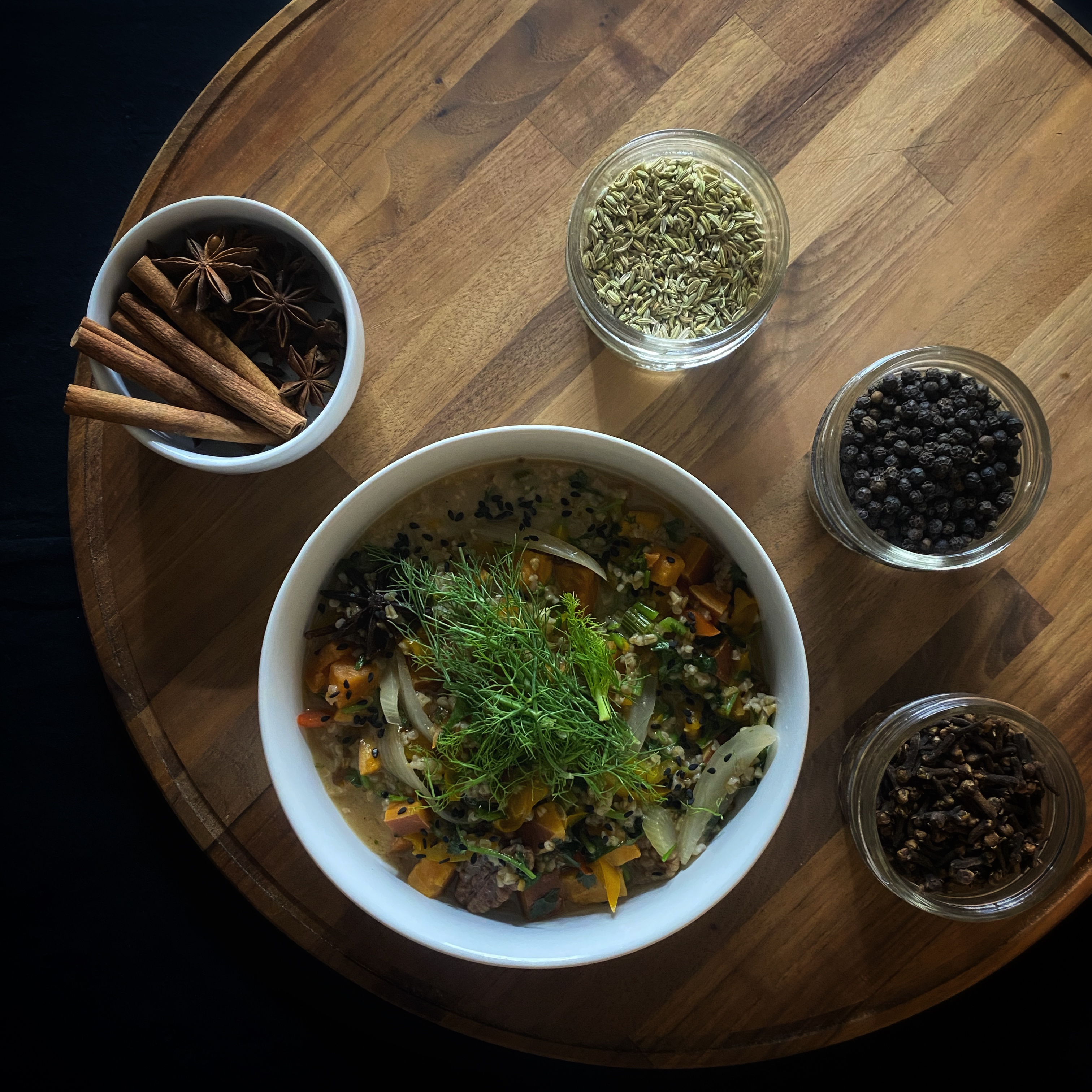 Alright y’all. Sweet oatmeal is out. Savory porridge is in. Without the oats, this is a lovely, aromatic, brothy soup. With the oats, it is a substantial meal that will keep you satisfied and light as you go through your day. I am not sure I will ever add fruit to my oatmeal again. Ingredients… Continue reading Chinese Five Spice Savory Porridge