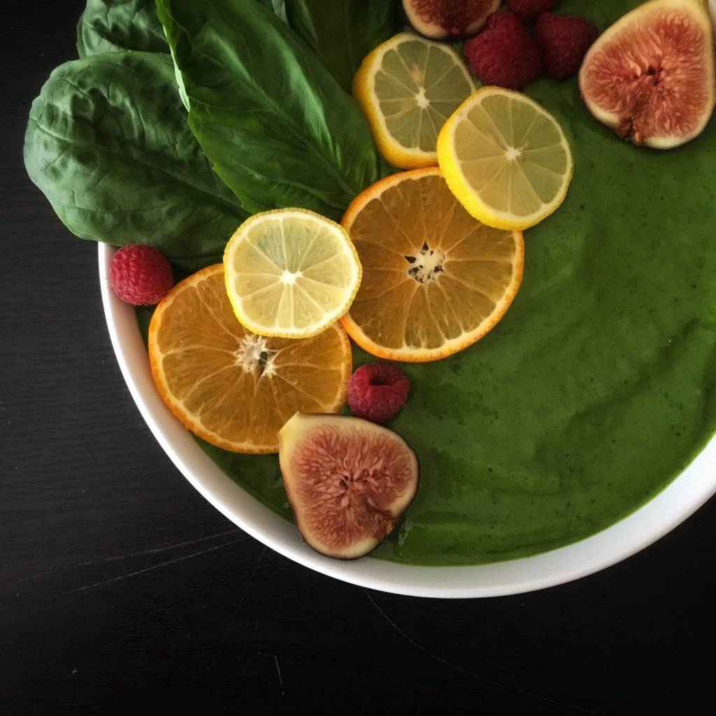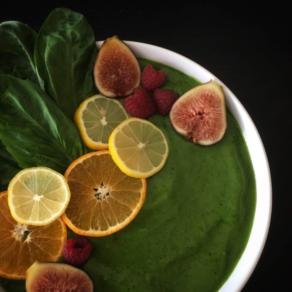 Have any of y’all tried adding basil to your green smoothies? It is delightful. The herb adds a refreshing tone to the taste, and extra greens never hurt anyone. Try this one for yourselves! I also recommend using raspberries as the frozen berry.