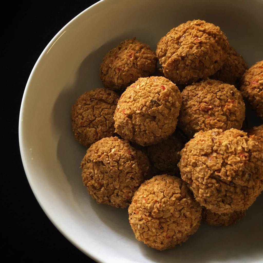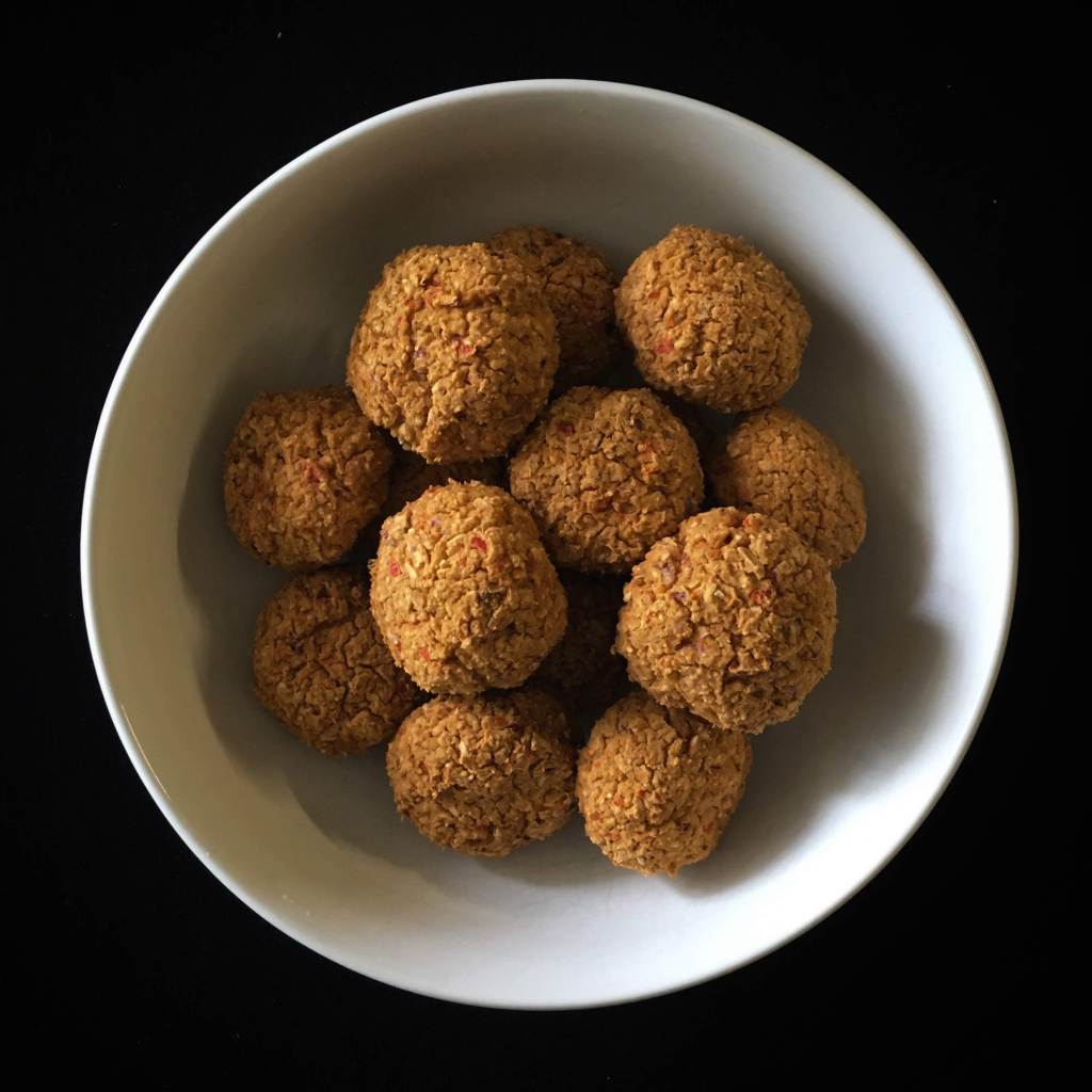 - If the mixture is not sticky enough to form balls, add oats to reach desired consistency