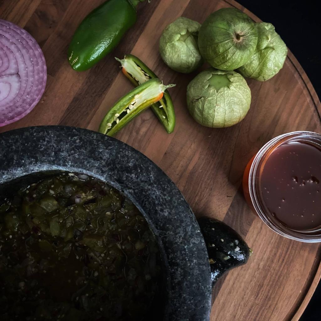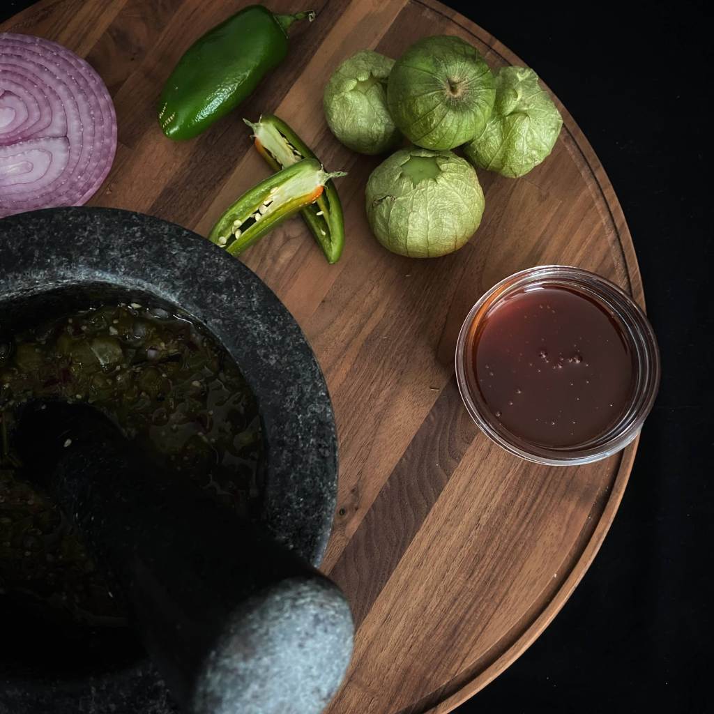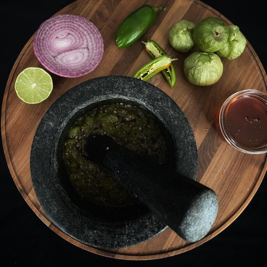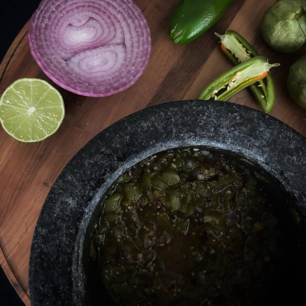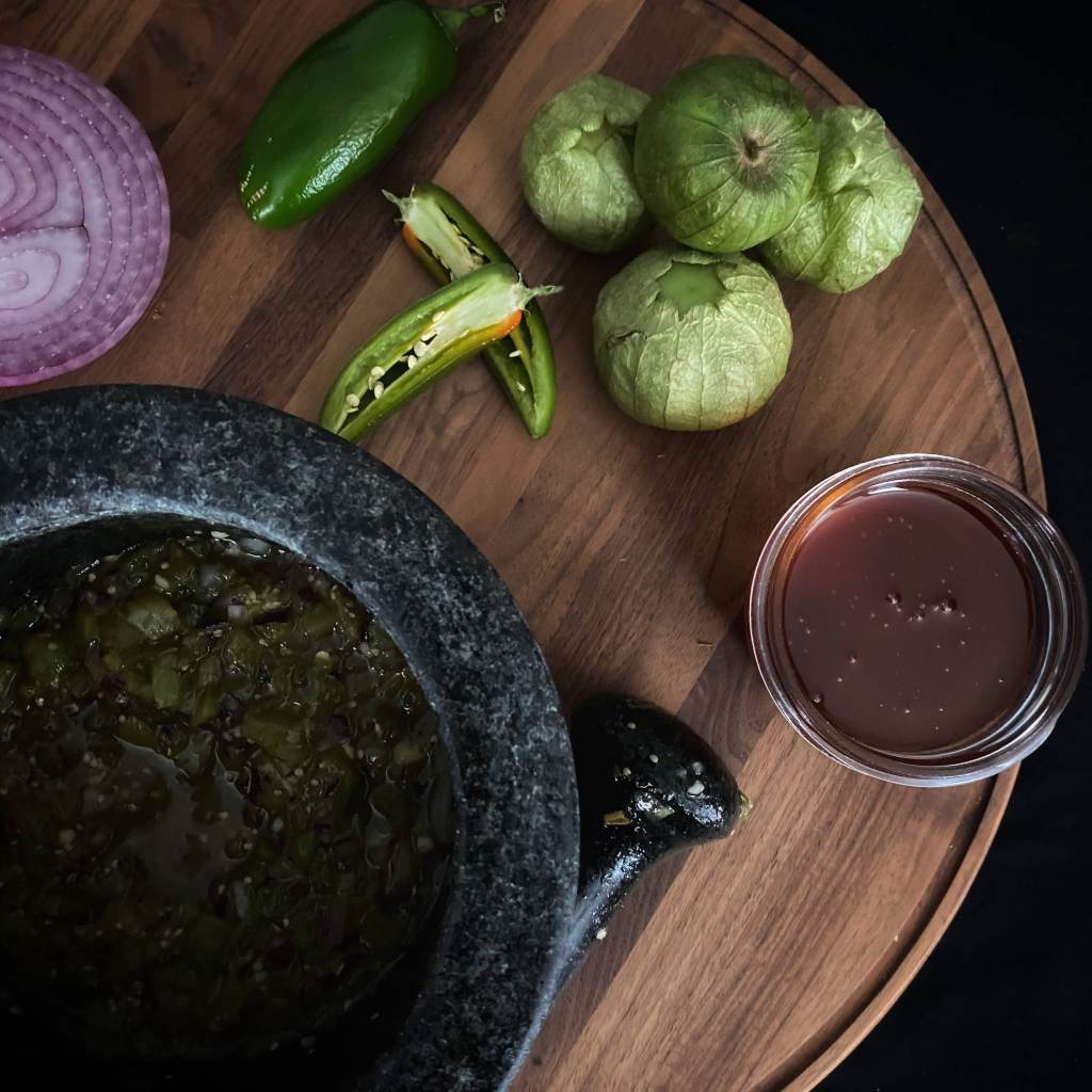Tomatillos are a fruit native to Mexico with a tangy taste and a jammy texture when roasted.  This makes them a wonderful base for salsa.  This recipe is my attempt at digging further into Mexican cuisine, of which I know disappointingly little.  Regardless, I am excited to explore the flavors of central America more.  I always enjoy using my mortar and pestle, but if you don’t have one, a food processor or even a bowl with a fork will work for this recipe.