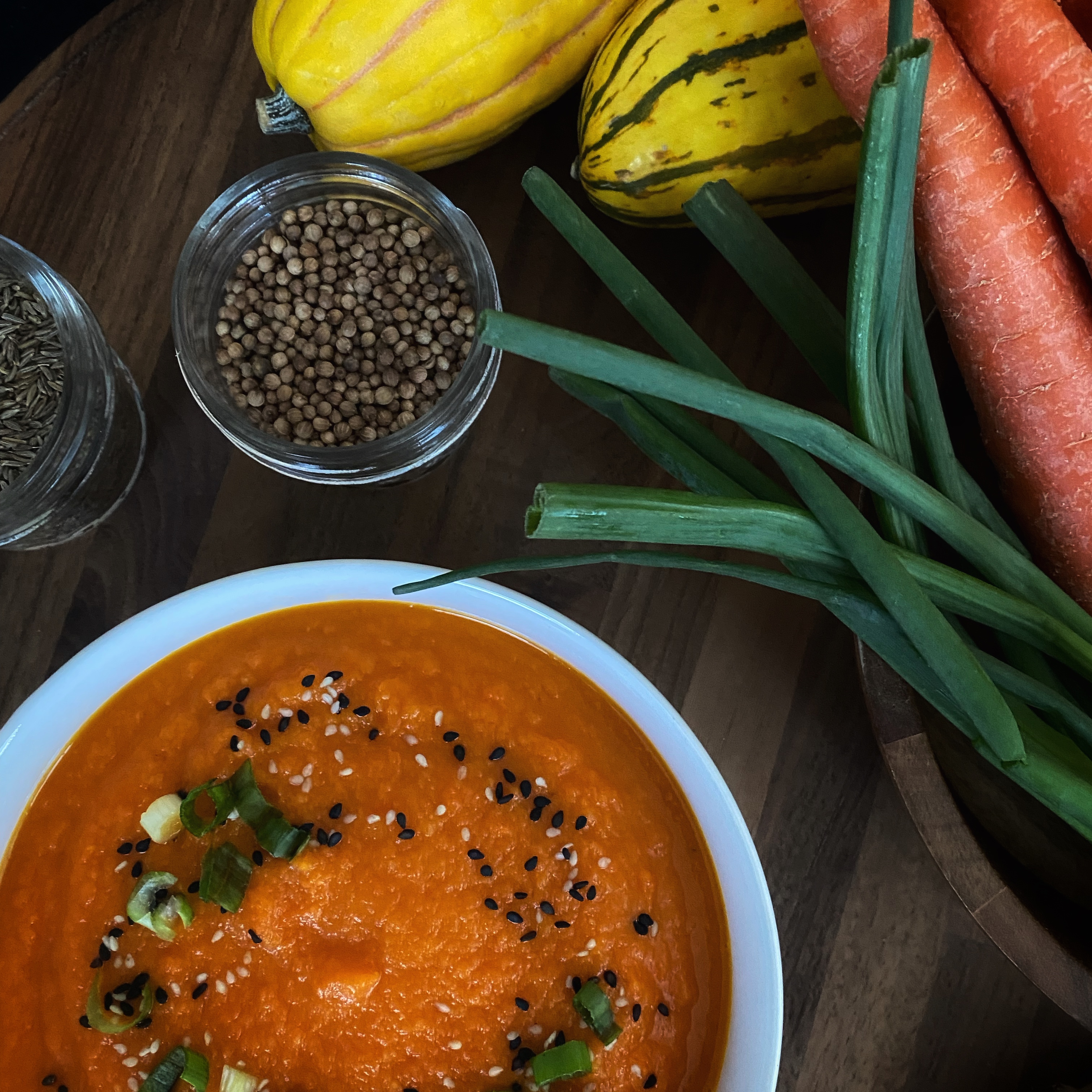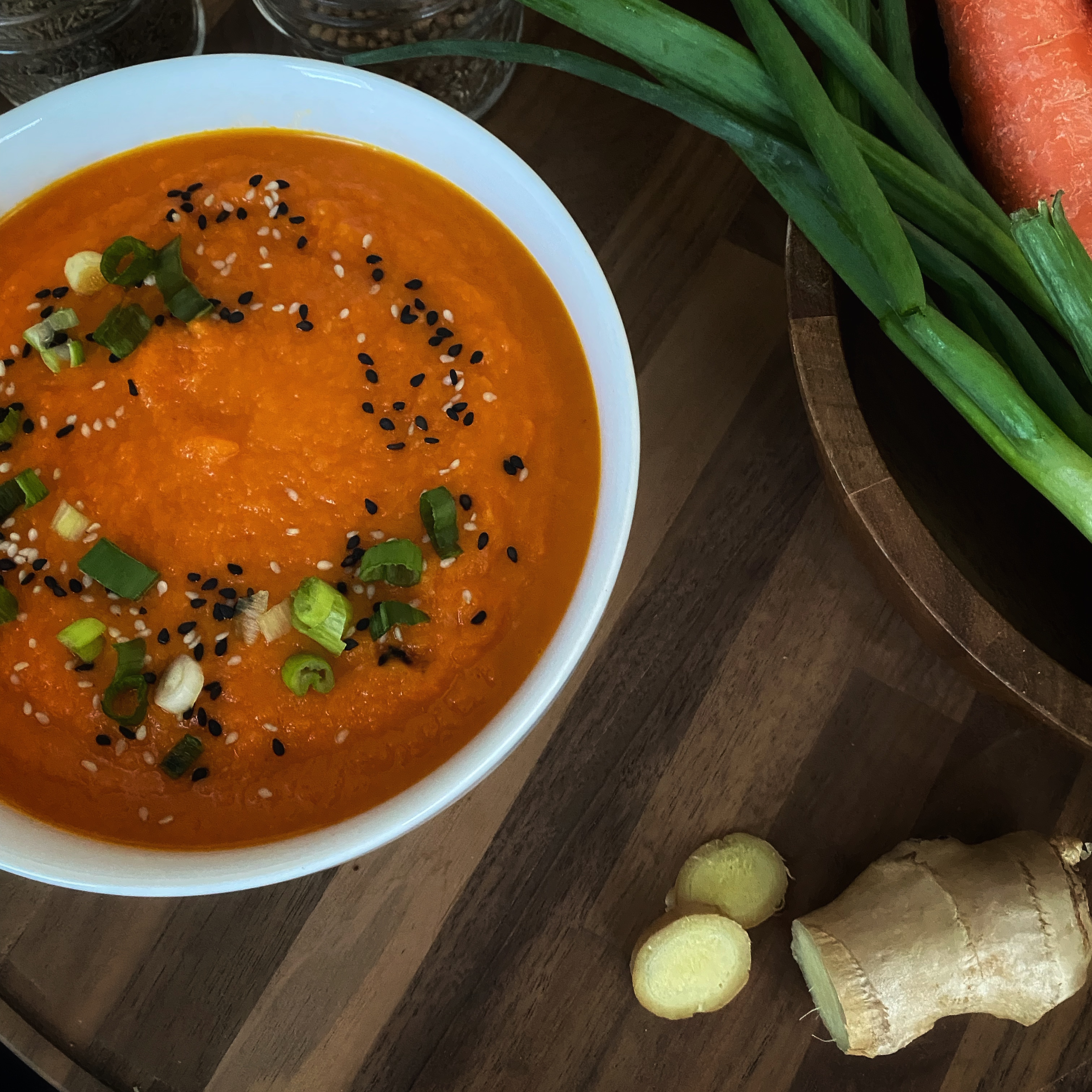 This week, I got sick. Again. I feel like this is a common trend these days. The best thing we can do for ourselves is provide the nutrients and care our bodies require to heal. This soup is full of ginger, which warms and soothes the throat and stomach. The carrots and sweet potato provide vibrant color and grounding energy while being gentle on the digestion. If you find yourself under the weather, give this soup a try.