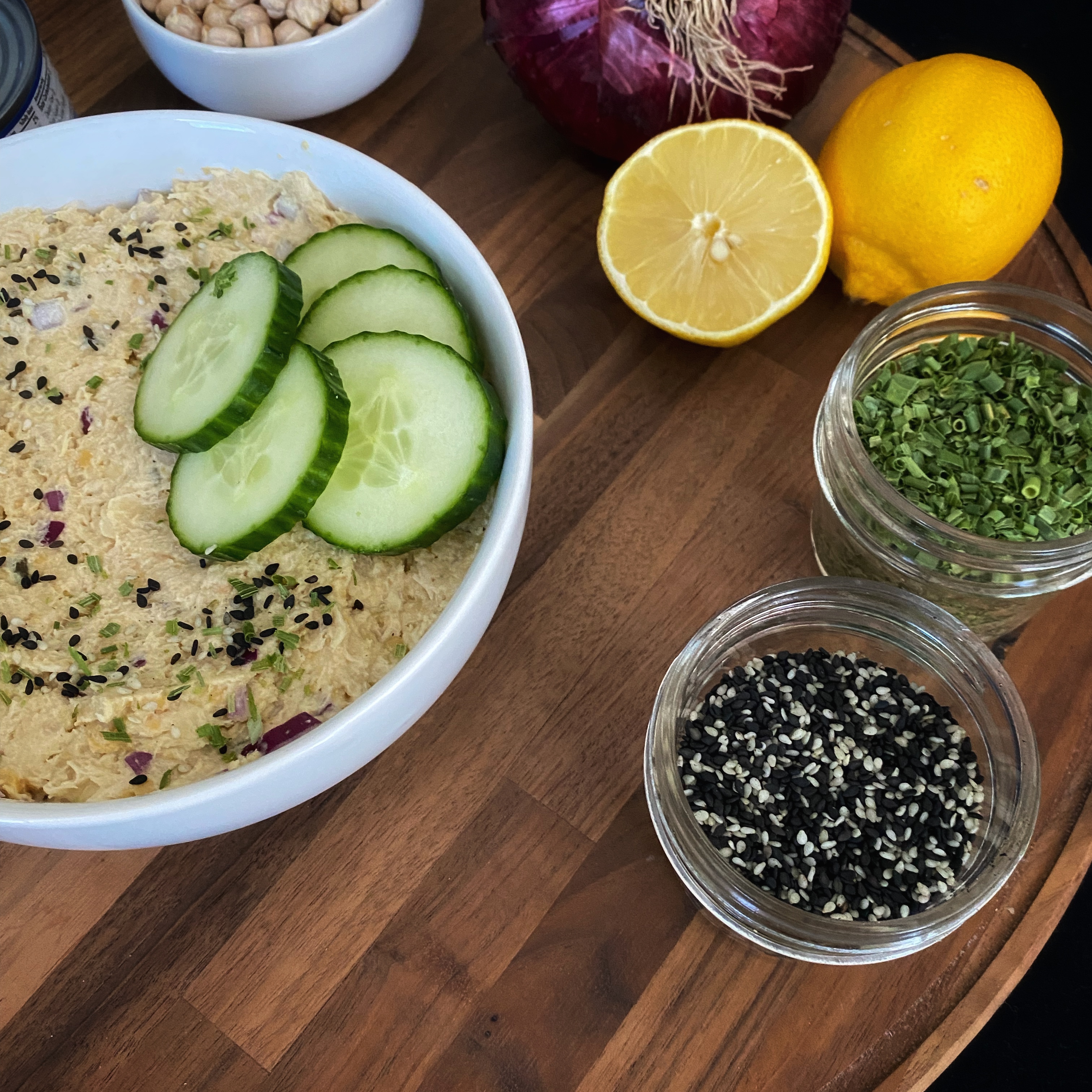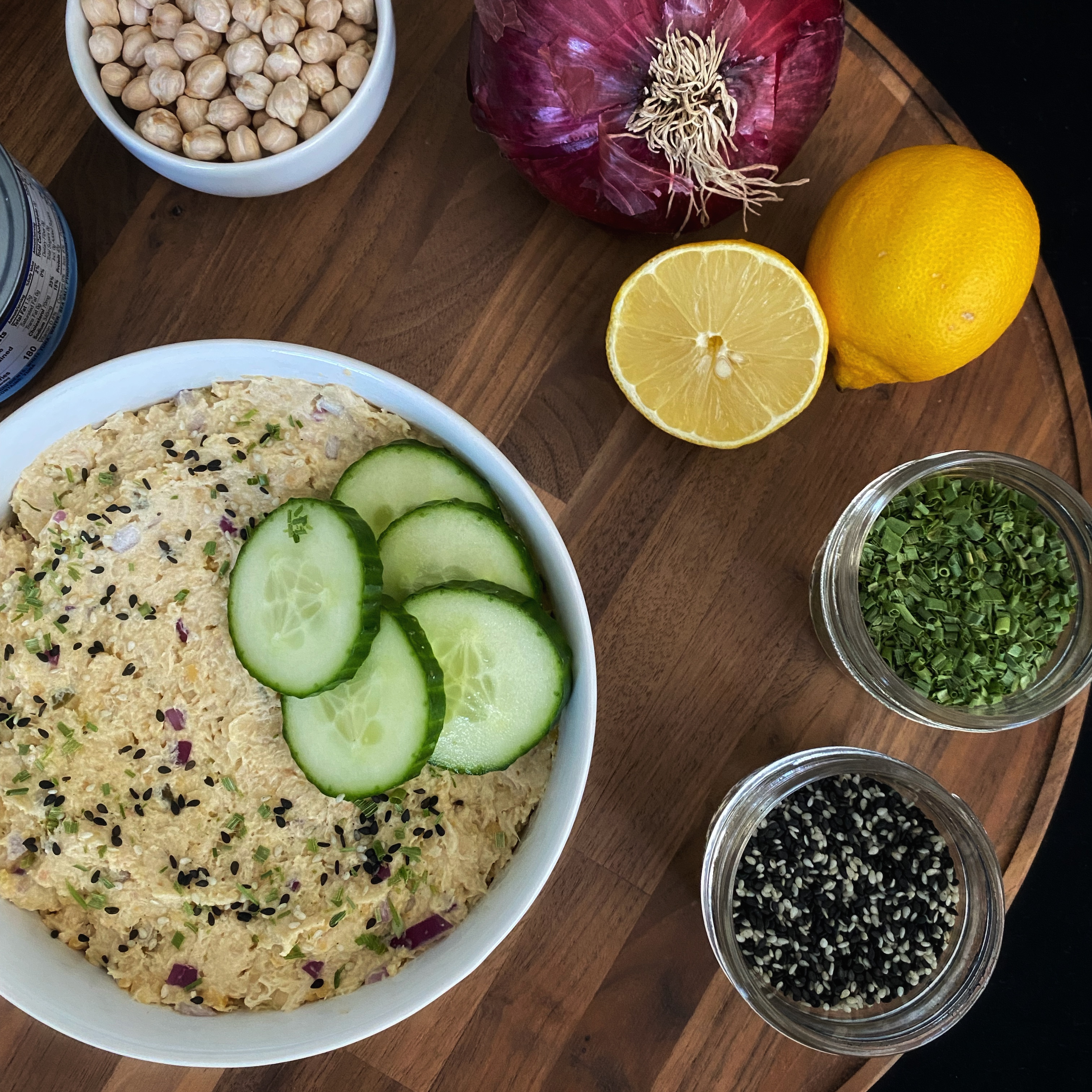 I have had tuna salad before. I have had chickpea salad before, but NEVER in my life, have I had tuna and chickpea salad together. This is probably due to my lack of culinary exploration and not because I am the first person to think of this. As someone who adores both salads and recognizes the nutritional benefits of fish and legumes, I took it upon myself to make this amalgamation of salads with a slight Mediterranean twist from the tahini. To add more flavor, feel free to add other Mediterranean flavors like roasted bell peppers, parsley, or capers instead of the relish. Serve this dish in a sandwich or just as a side with crackers. For all my charcuterie girlies, this one is for you!