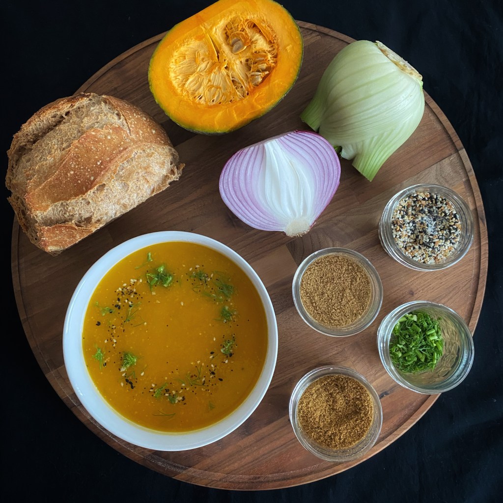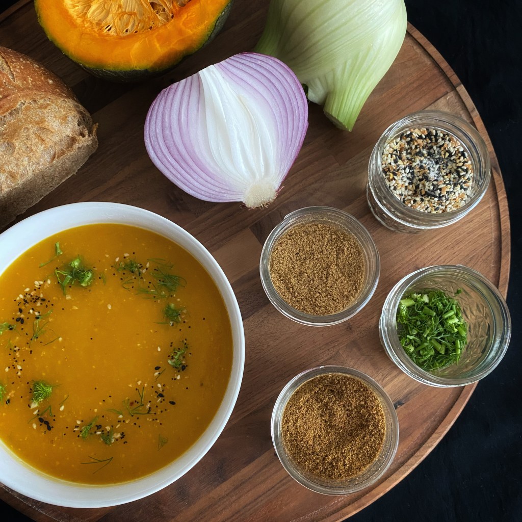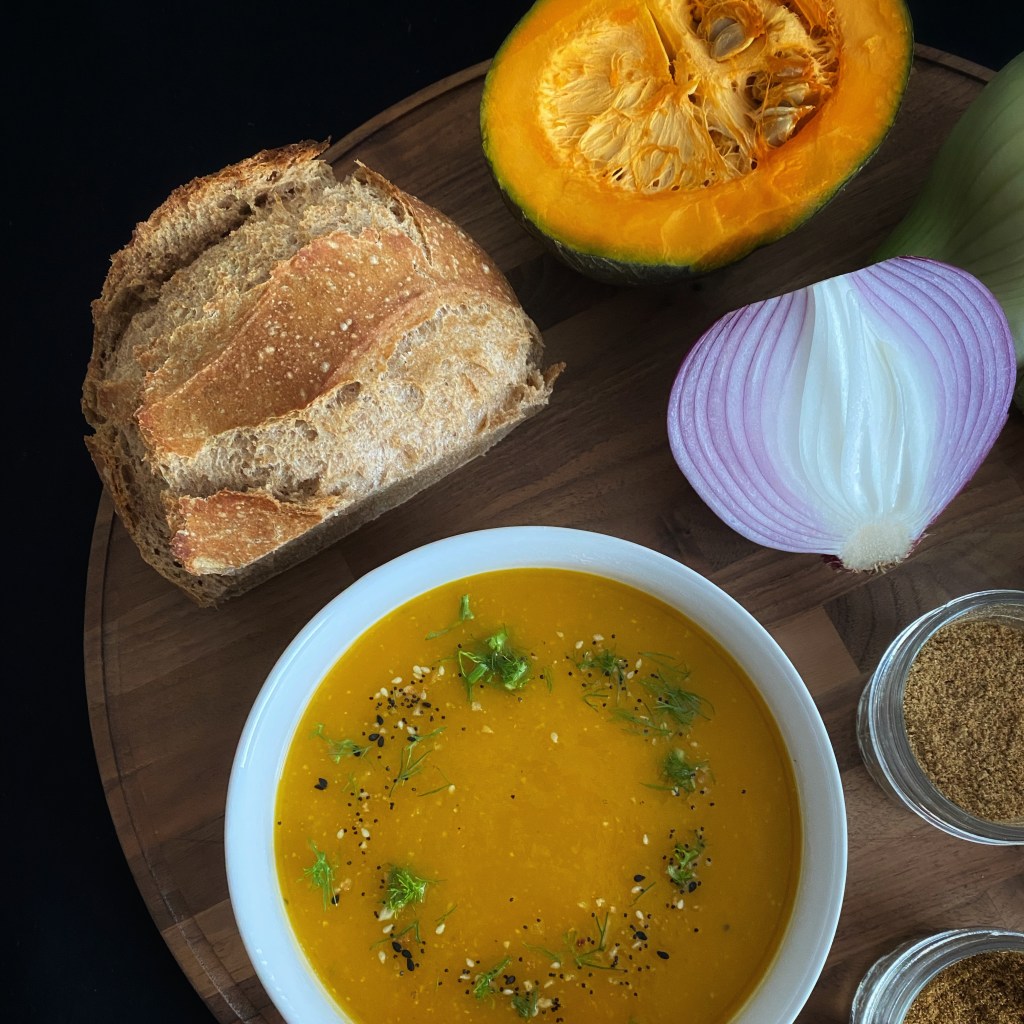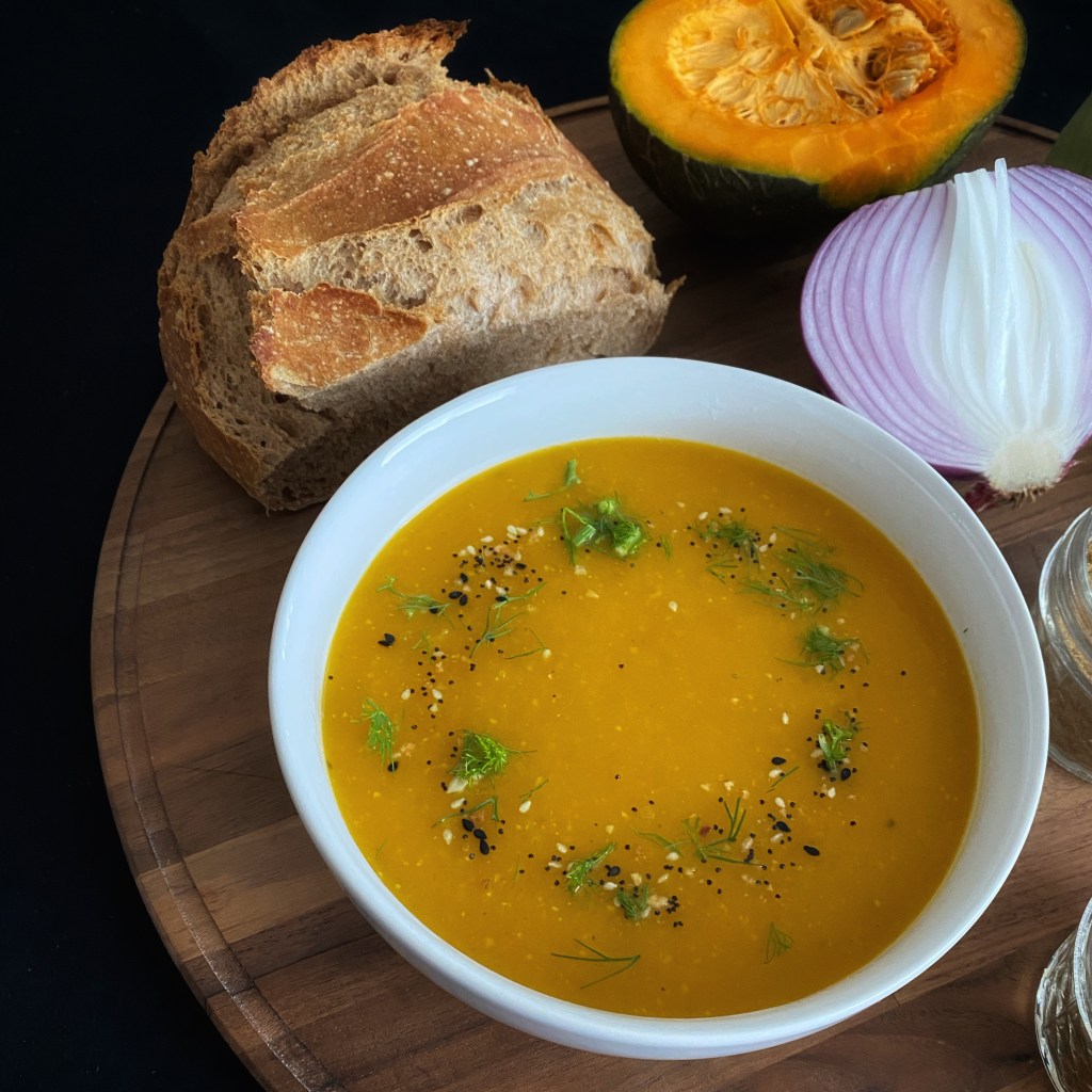 I love kabocha squash. I will go on record now saying it is the best squash, and I will defend it at all costs. It is rich, savory, and adds a wonderful creaminess when blended in this soup. It can honestly be used as a substitute for egg yolks because it gives that equivalent taste, texture, and color. This soup is a staple for me in the winter, and I will be a kabocha squash defender for life.