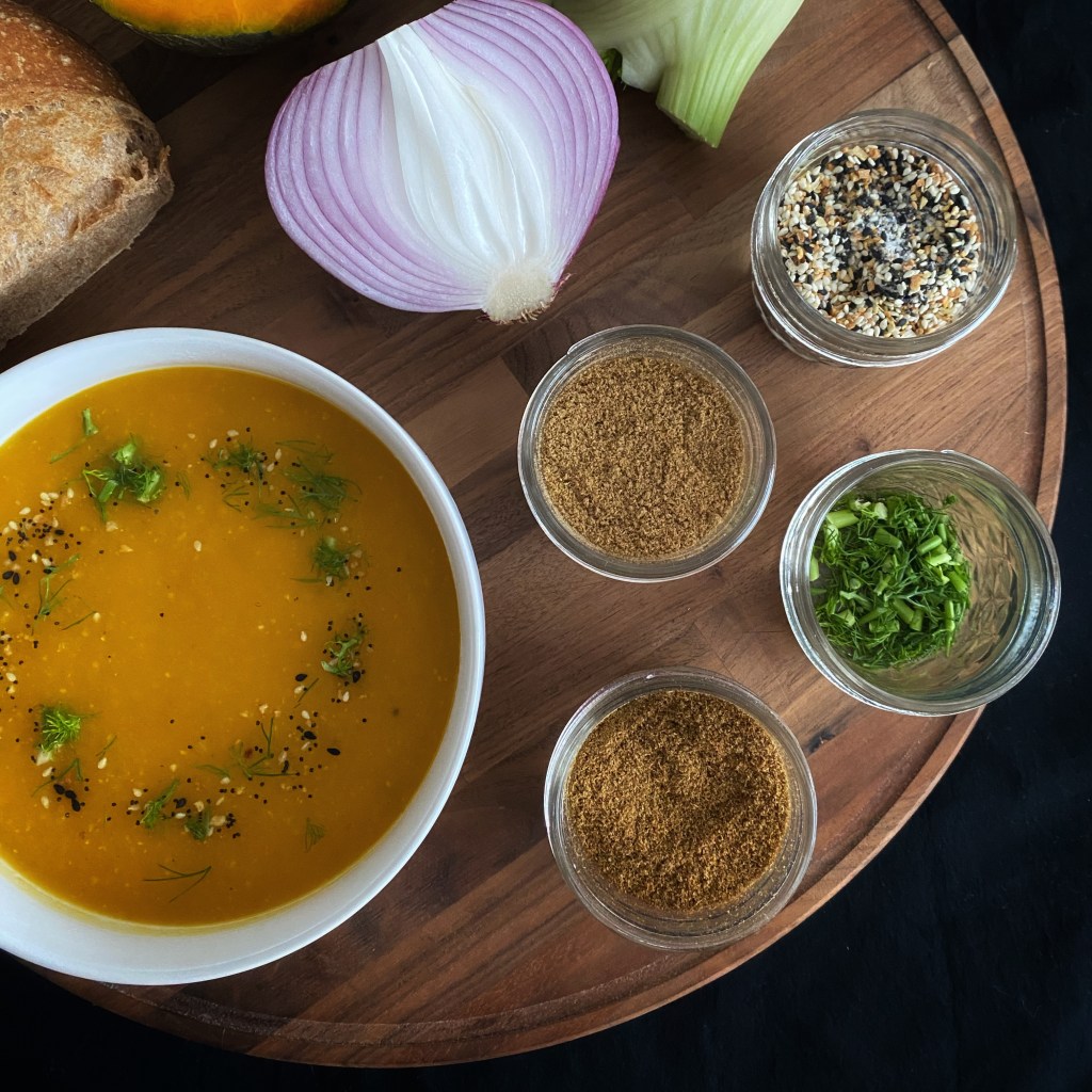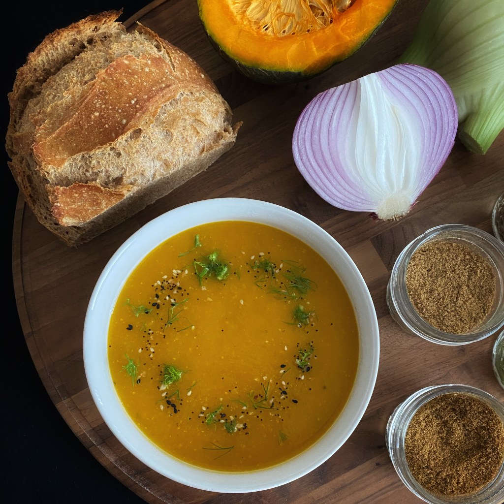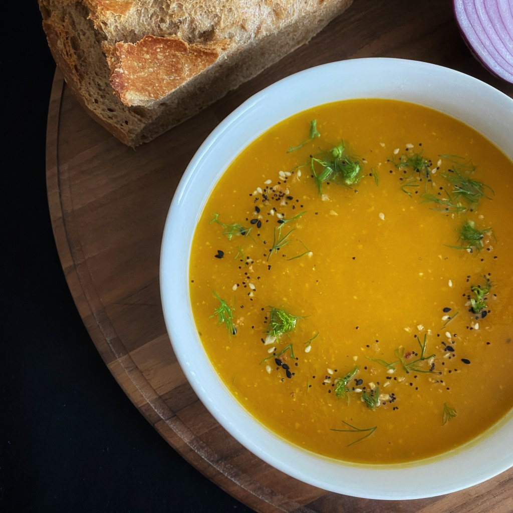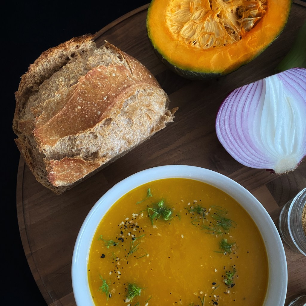 I love kabocha squash. I will go on record now saying it is the best squash, and I will defend it at all costs. It is rich, savory, and adds a wonderful creaminess when blended in this soup. It can honestly be used as a substitute for egg yolks because it gives that equivalent taste, texture, and color. This soup is a staple for me in the winter, and I will be a kabocha squash defender for life.