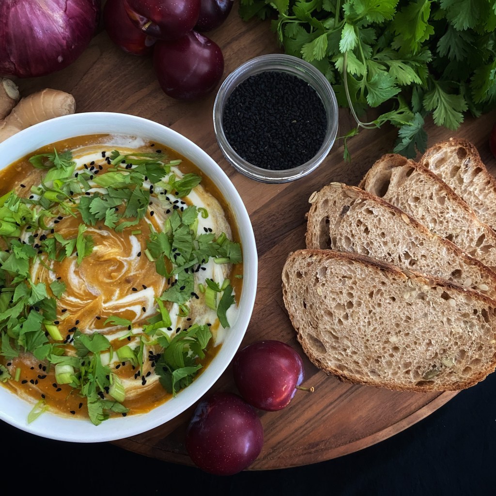 - Garnish with green onion, cilantro, and nigella seeds