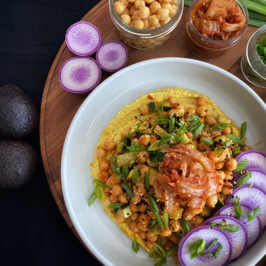 - Top off with ¼ cup kimchi