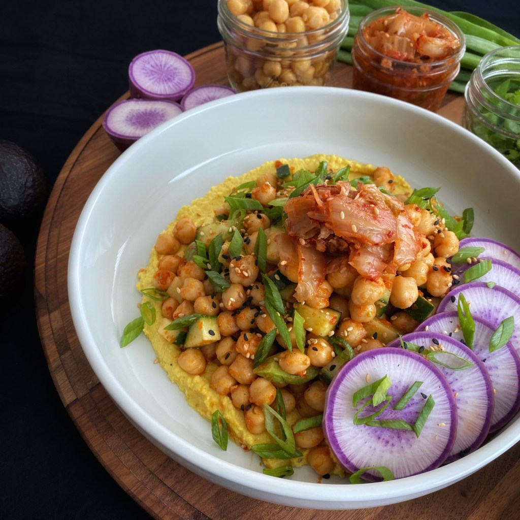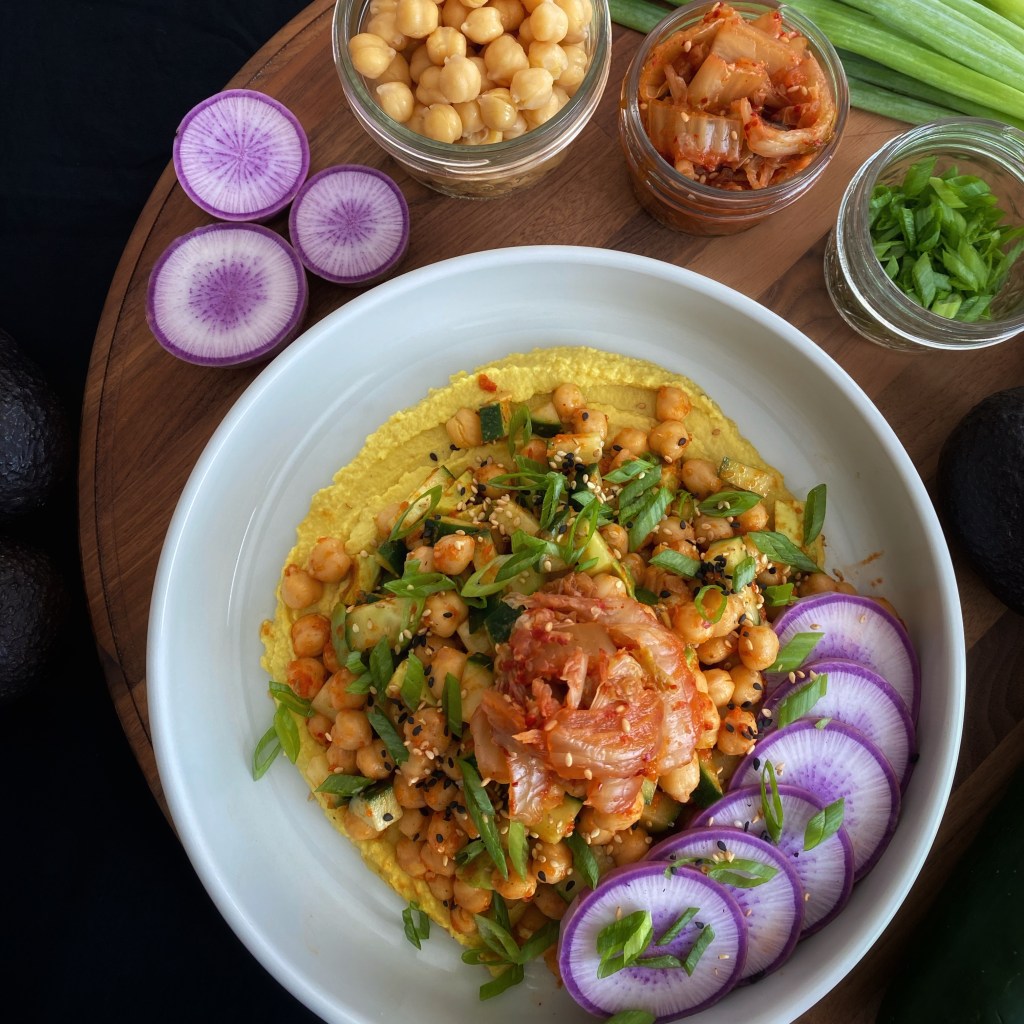 I have had this breakfast almost every day for the last six months. It has staying power. High in protein and probiotics and very filling, this one is a winner for me. I do use a kimchi sriracha product, but I have instructions here to make your own if you do not have any on hand.