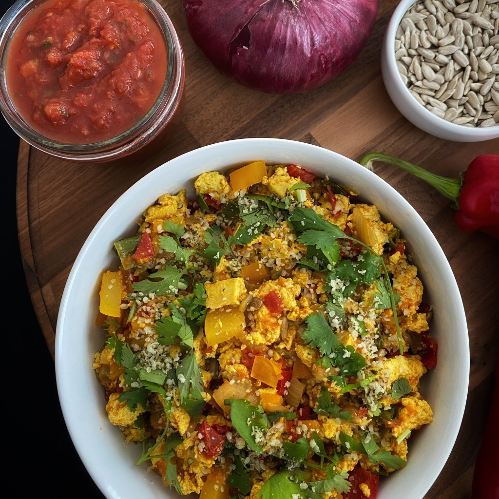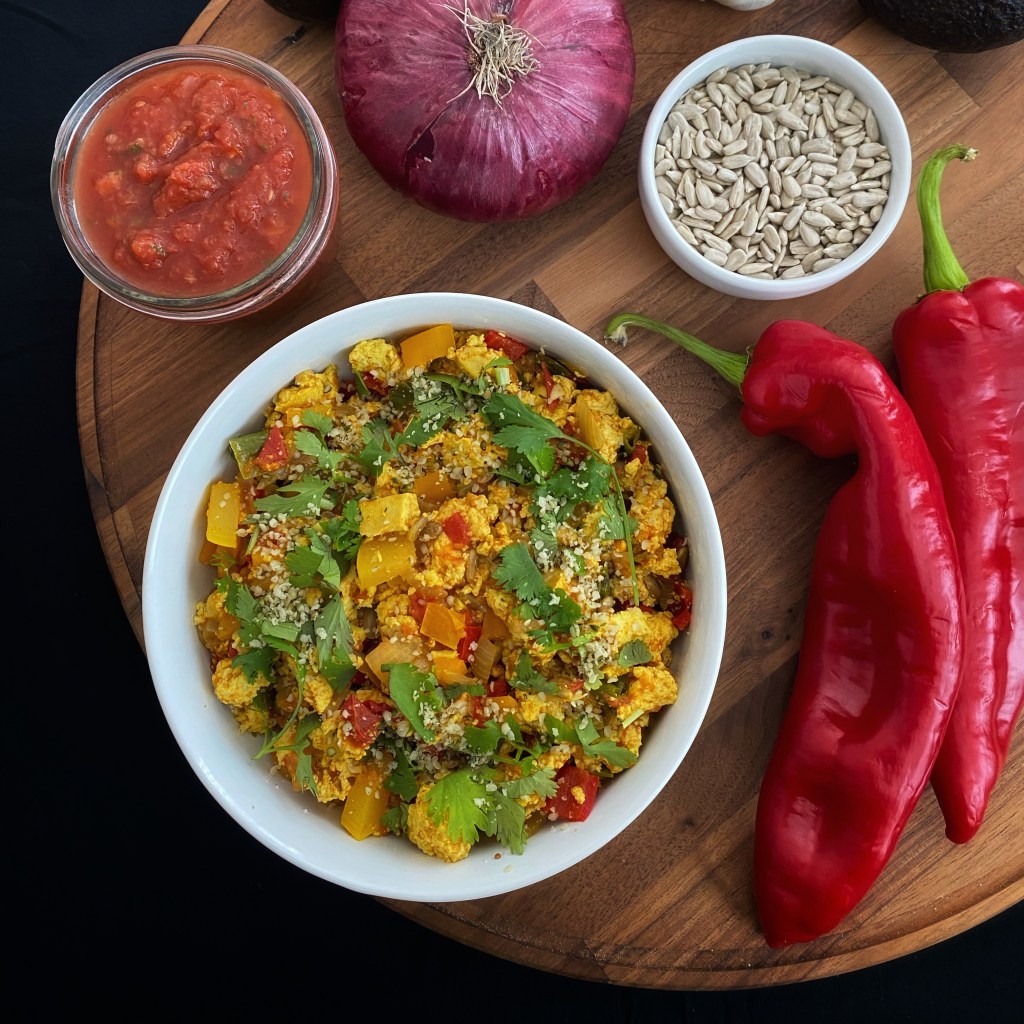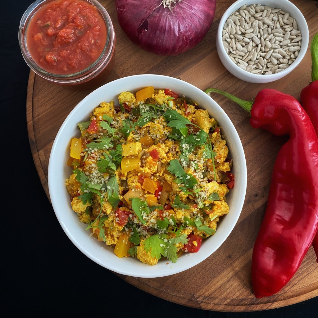 This is my take on the famed tofu scramble. The recipe is very much a baseline for other flavors. For example, the dish can easily be turned into a masala scramble by adding spice blends and a bit of nut milk. That has been a favorite of mine lately. Try it. Test it. Tell me what you’d do with it. Have fun!