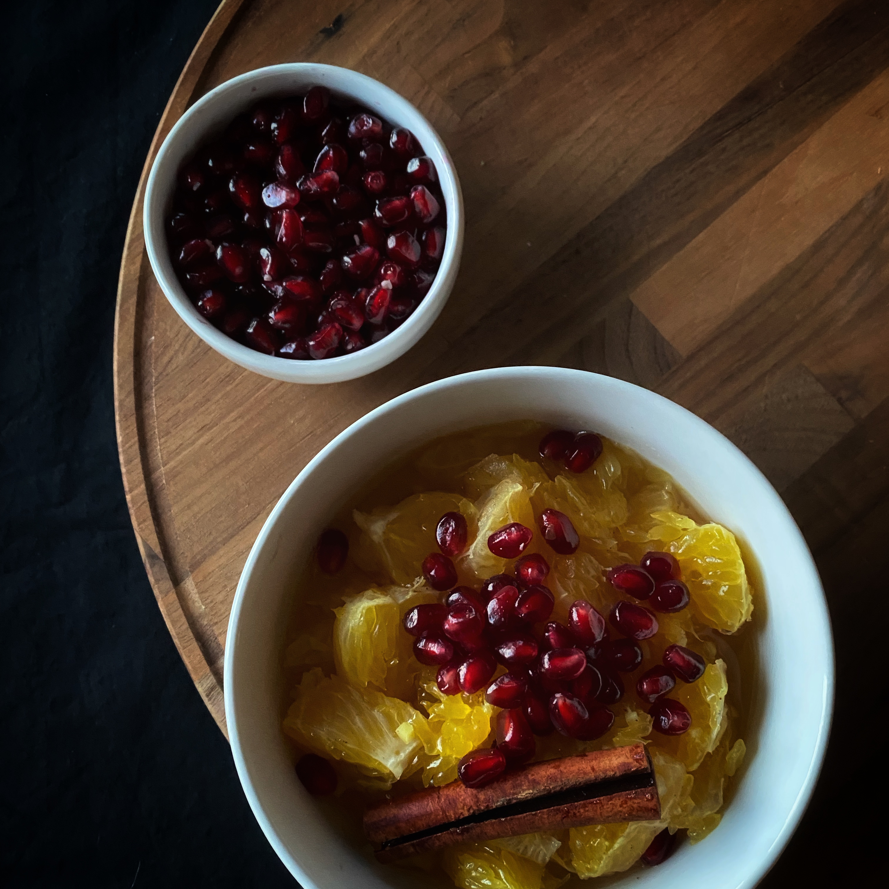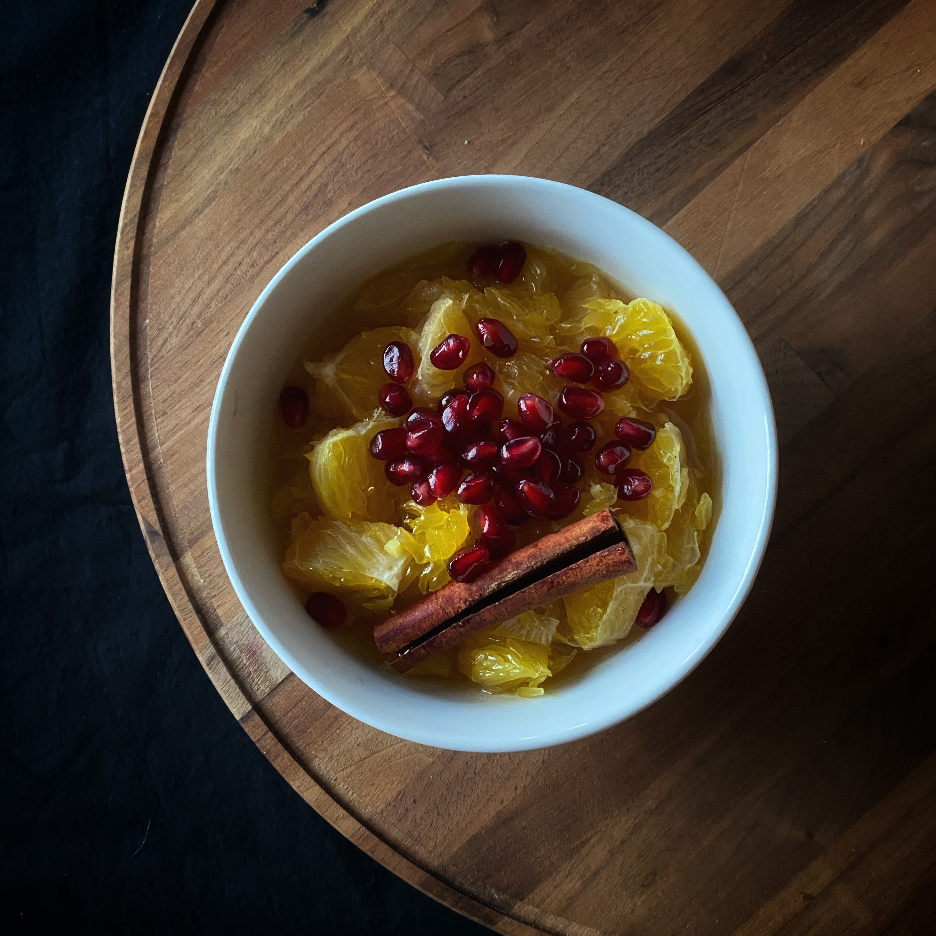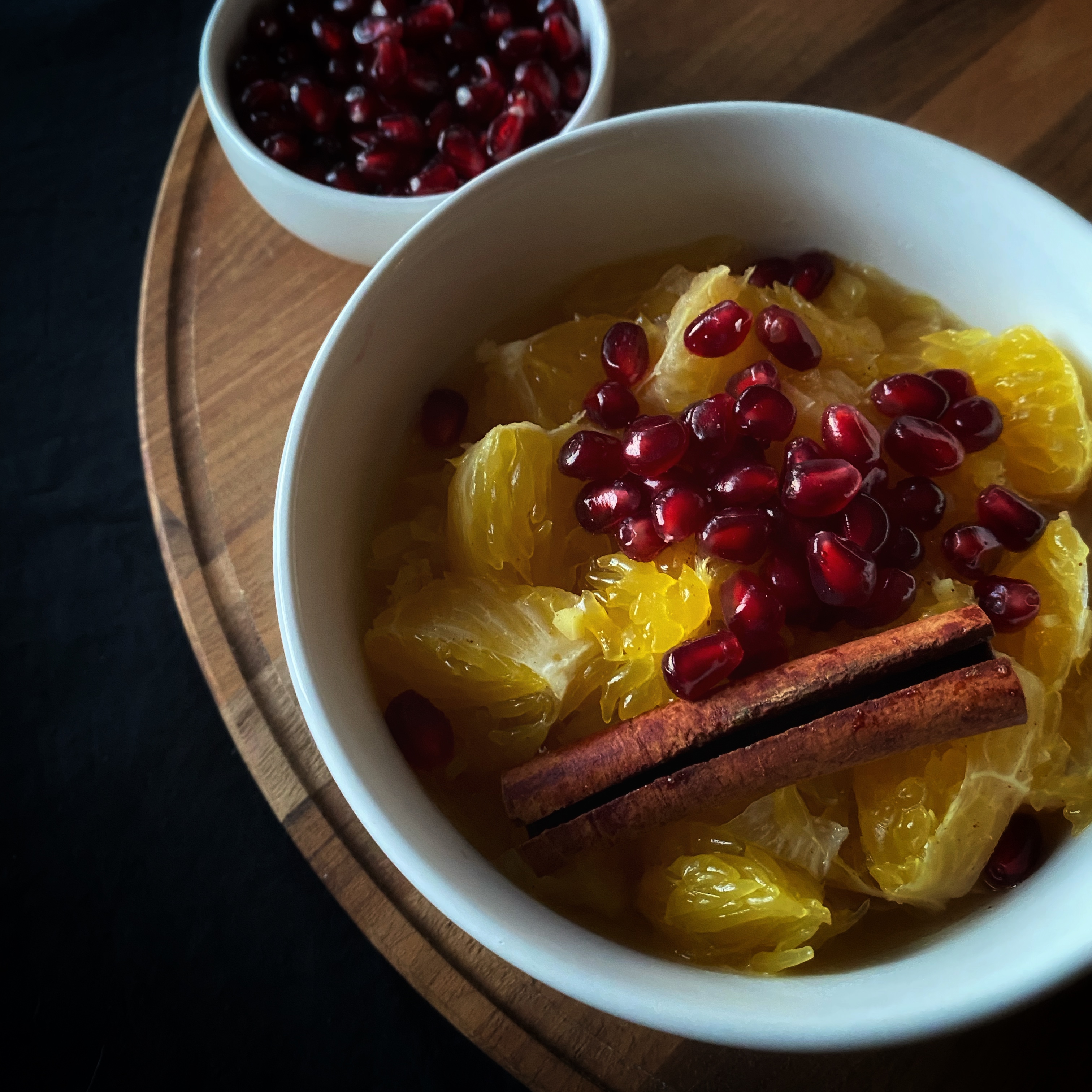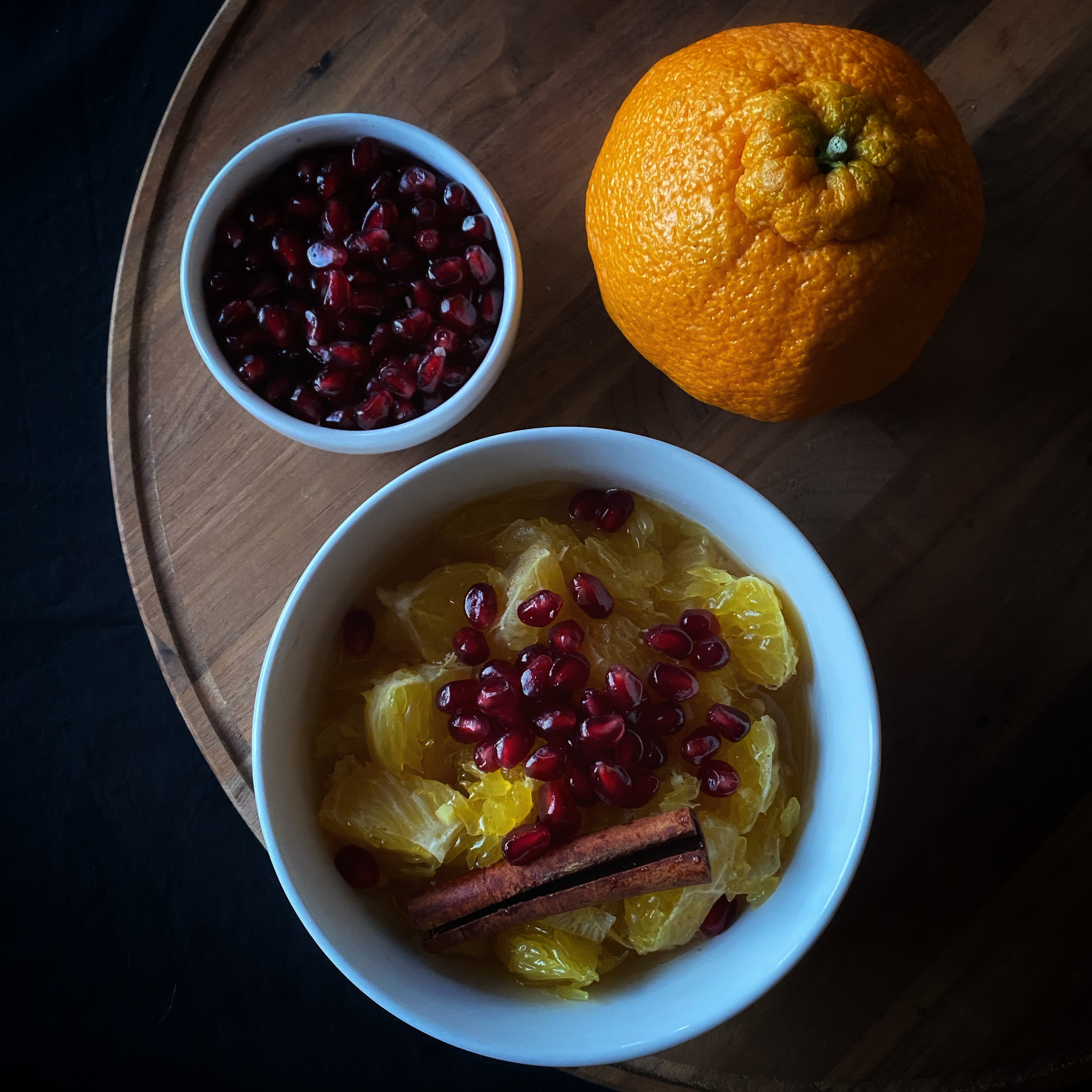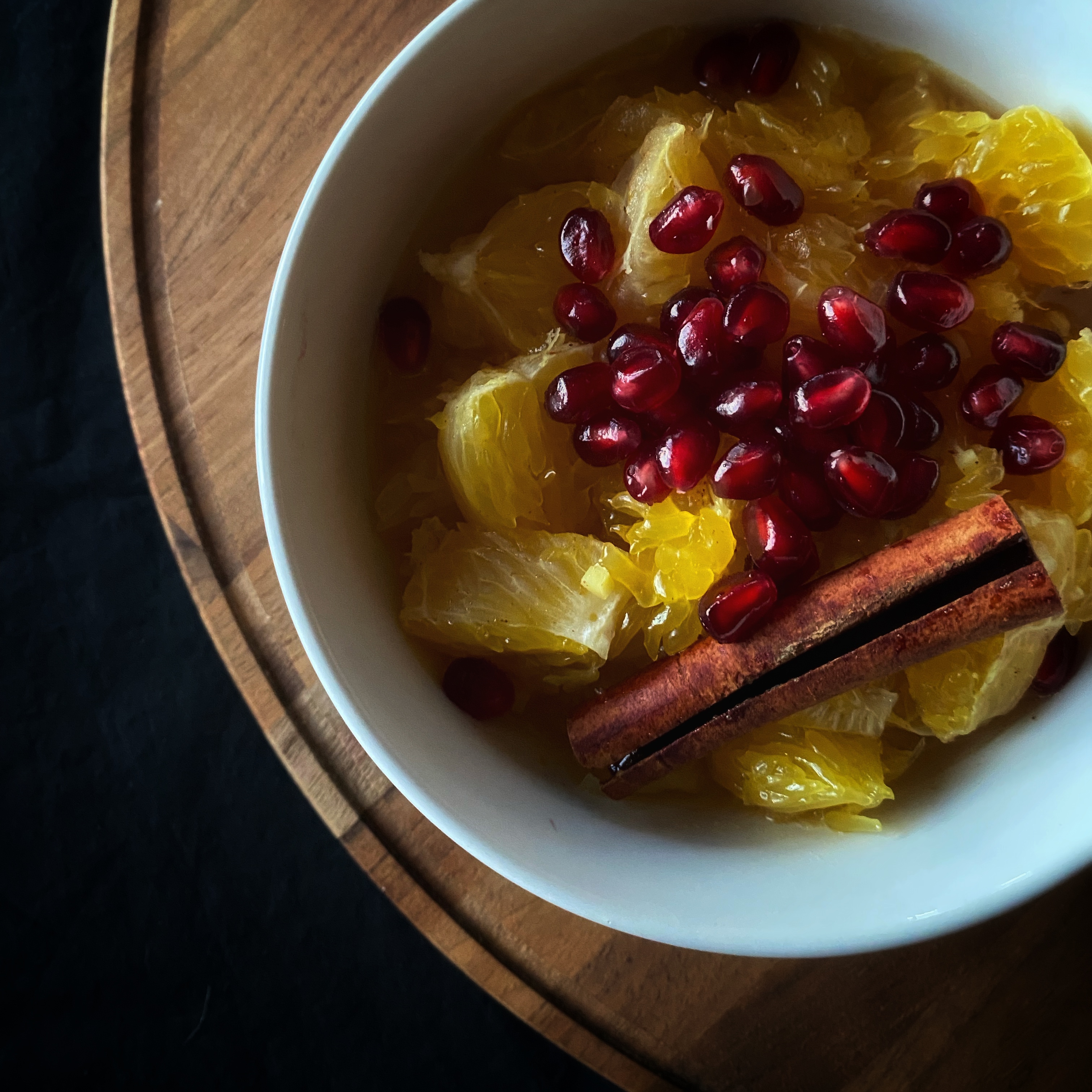As I have explored more in the knowledge of Ayurveda, I have enjoyed beginning my day with a common recipe to gently begin the daily digestion process: stewed fruit, which I affectionately call fruit soup. I thought of this recipe when I was away from home spending time with family for the holidays, and I bought a bag of oranges that I did not know what to do with. The combination with ginger and cinnamon, topped with pomegranate seeds is bursting with freshness and pungent flavors that will warm you from the inside out this winter. This recipe serves one.