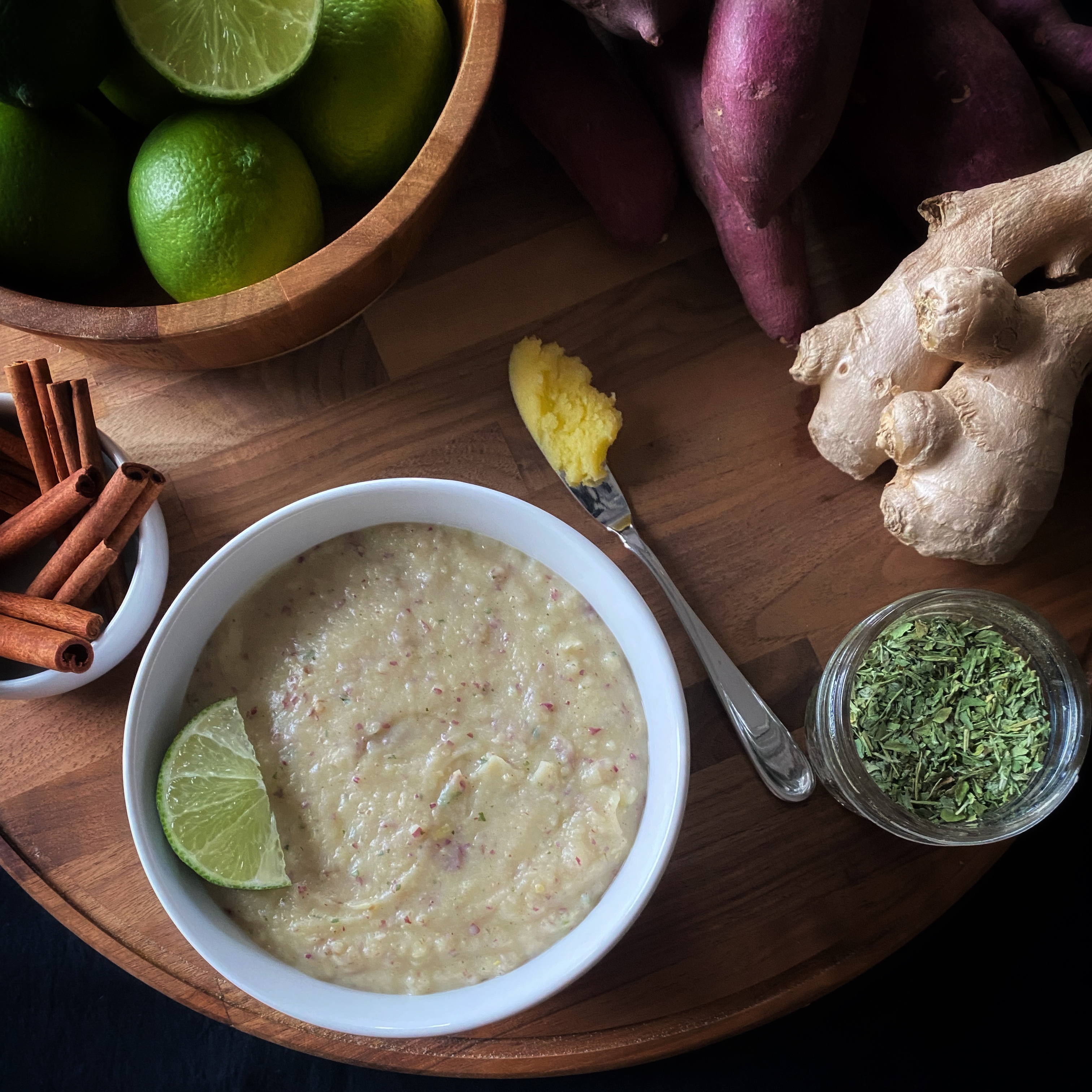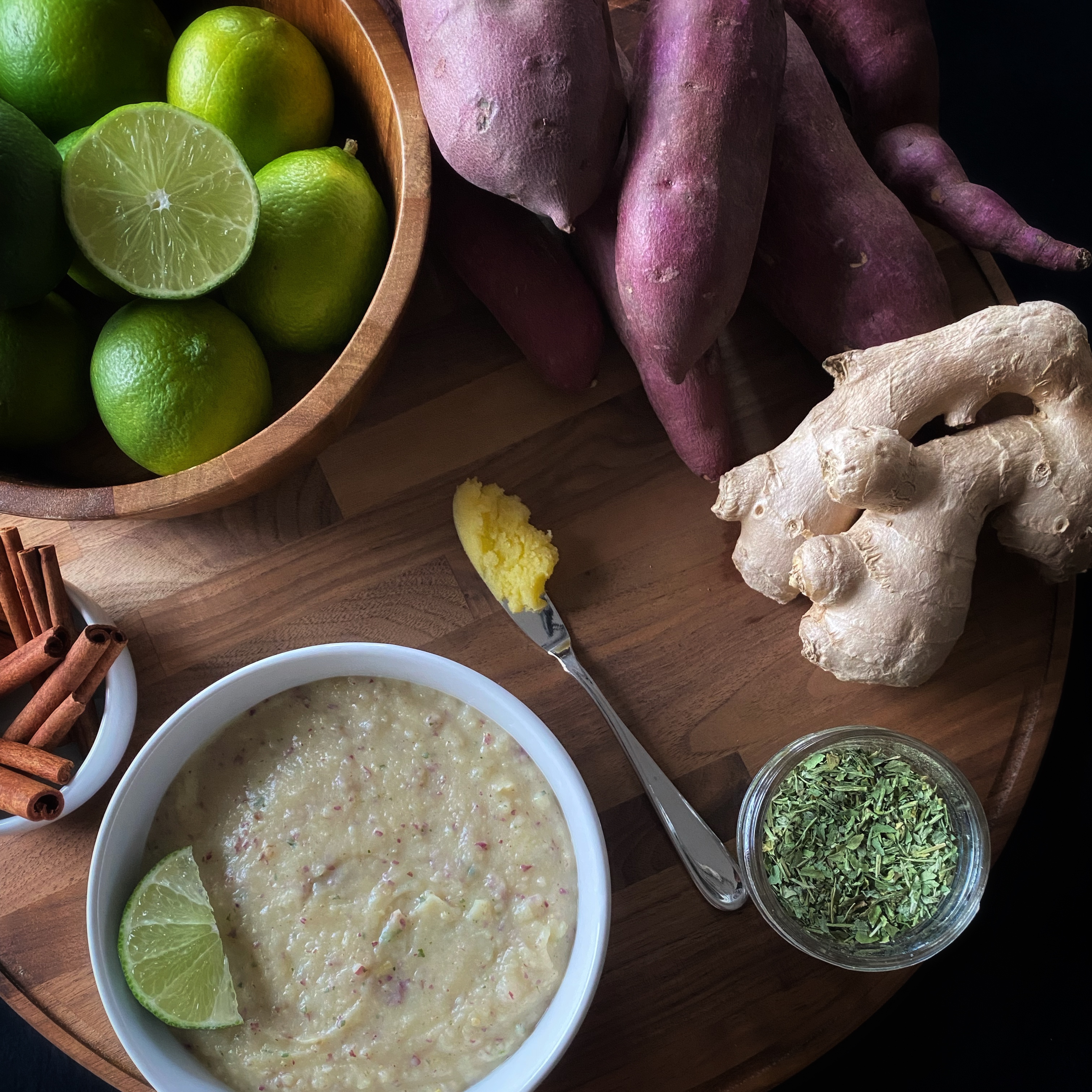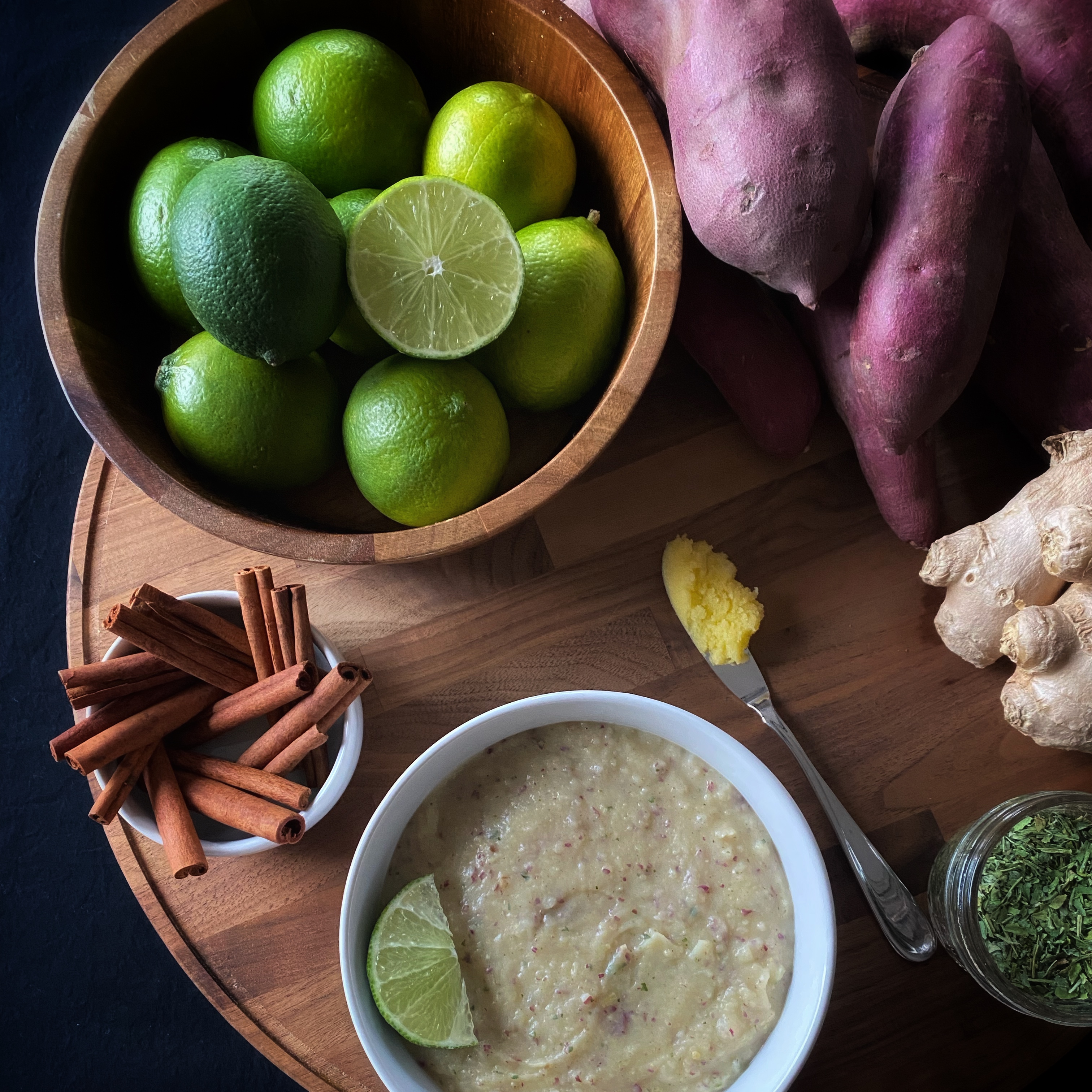Alright, hear me out. This recipe reminds me of key lime pie. Is it true that I have not had this pie in years, nay decades? Yes. Still, it’s sweet, sour, and hearty from the firm texture of the sweet potato. The fenugreek seeds also add a maple syrup aroma that reminds me of pancakes in the morning. Theoretically, any sweet potato can be used for this recipe, but I highly advise using the Japanese variety. Its flavor blends beautifully with the lime and aromatics. If you are looking for a sweet breakfast or a starchy side dish to have with a meal, give this one a try. This recipe serves one.