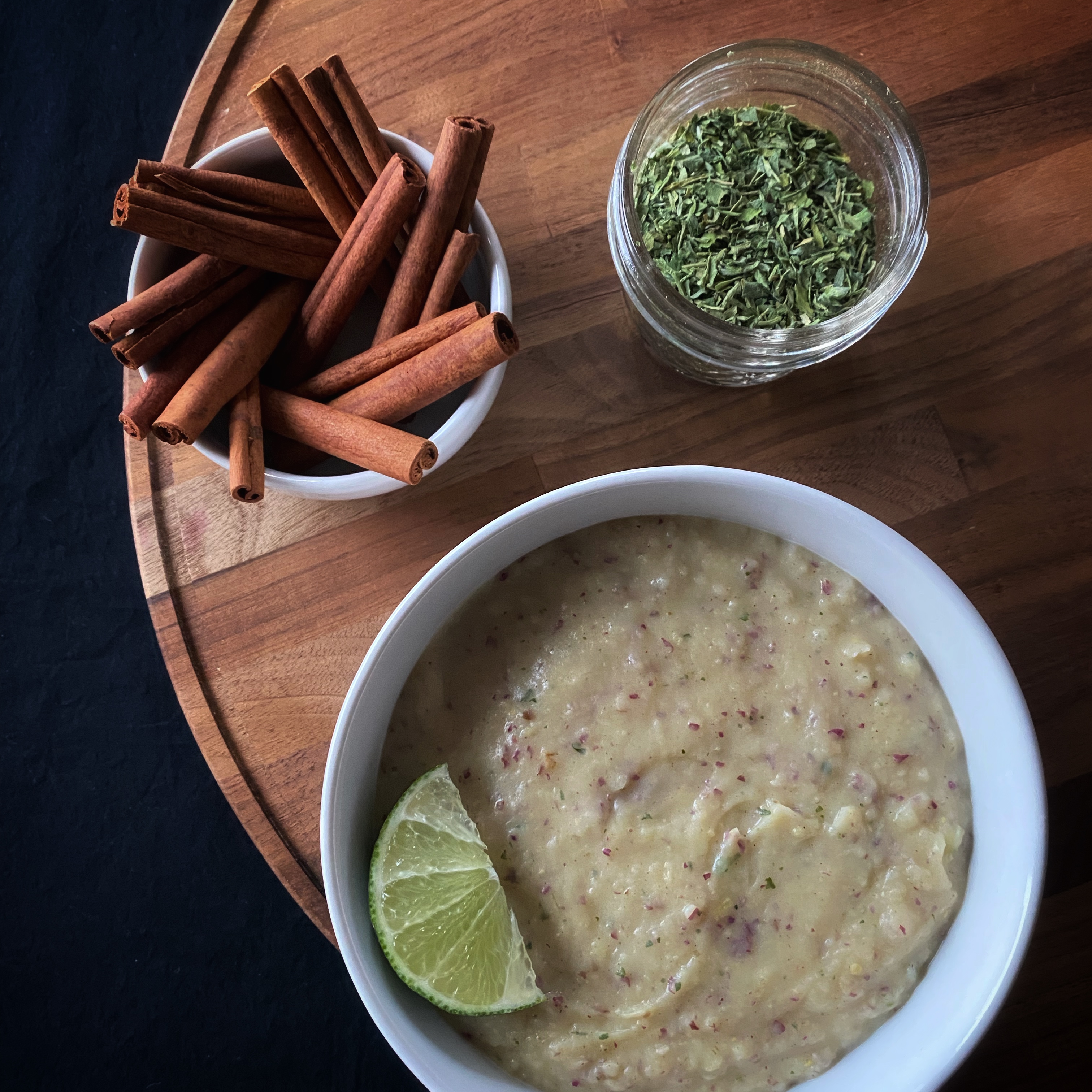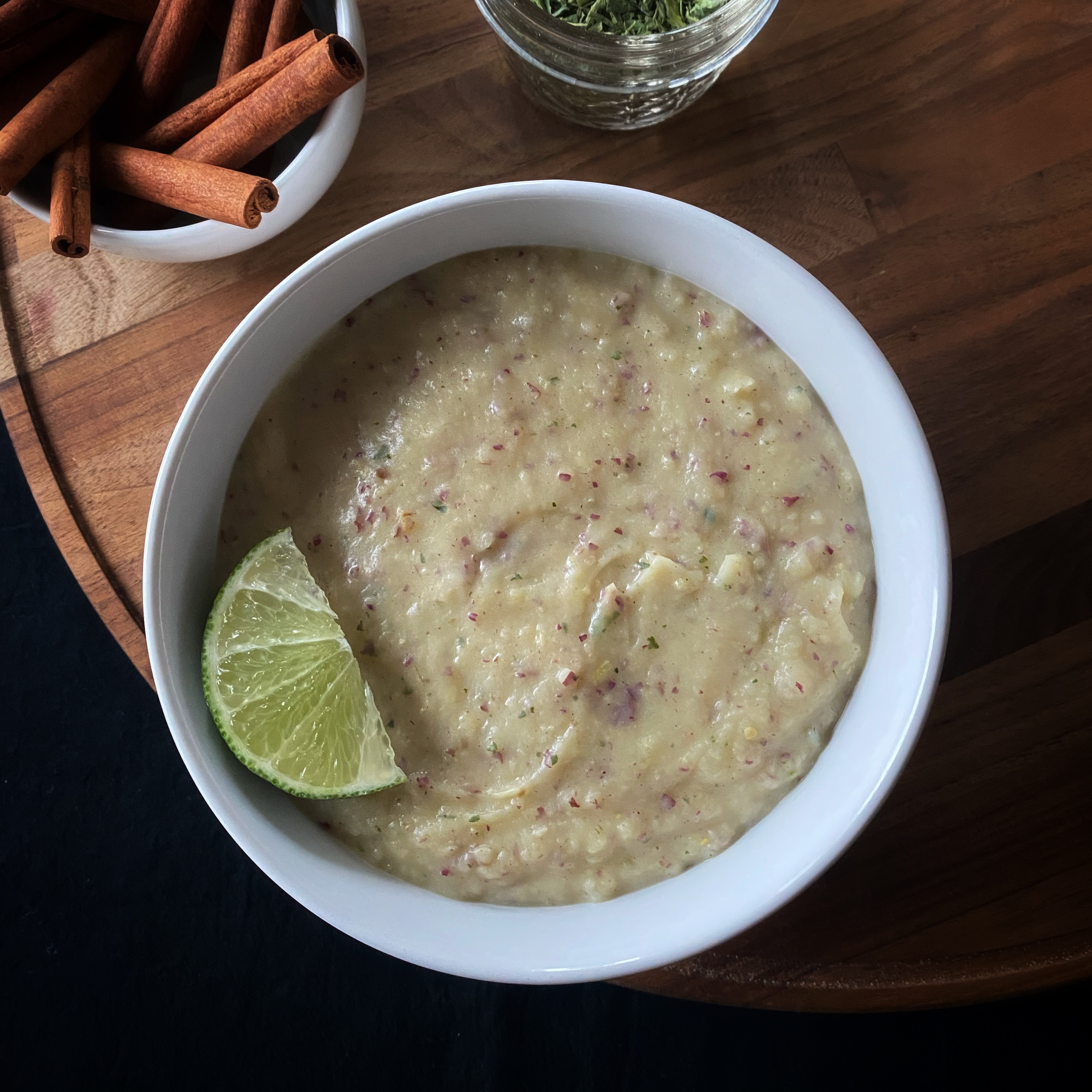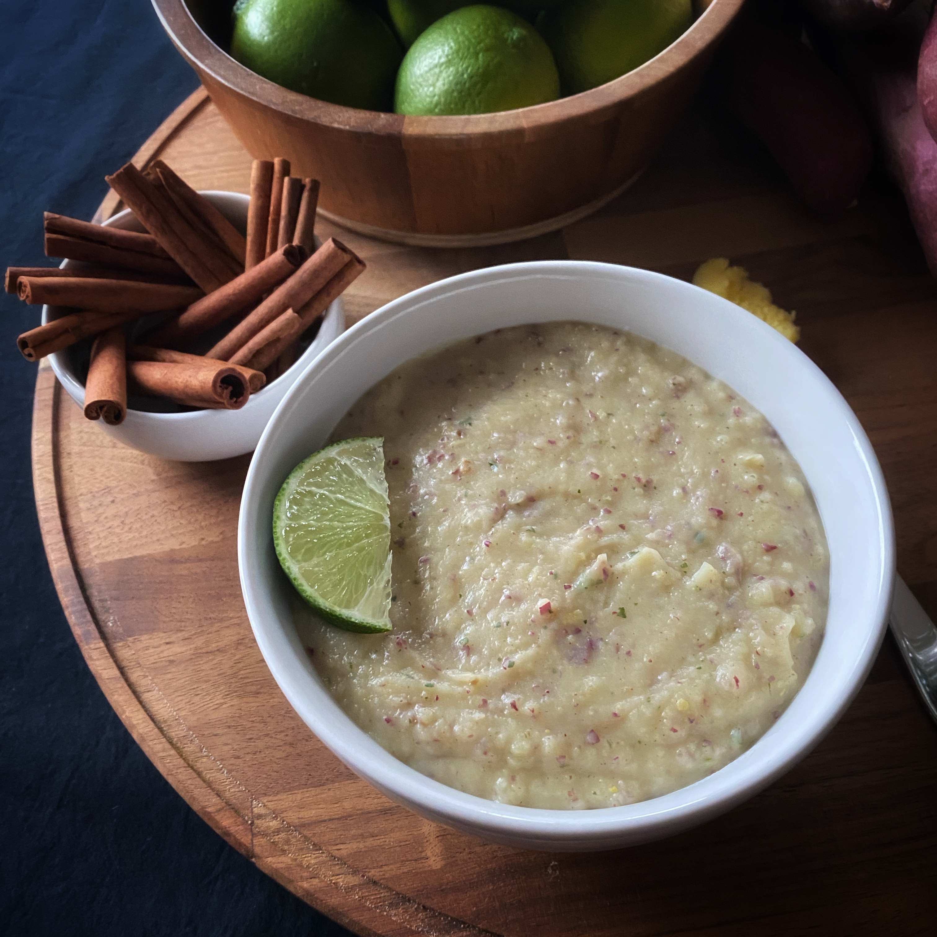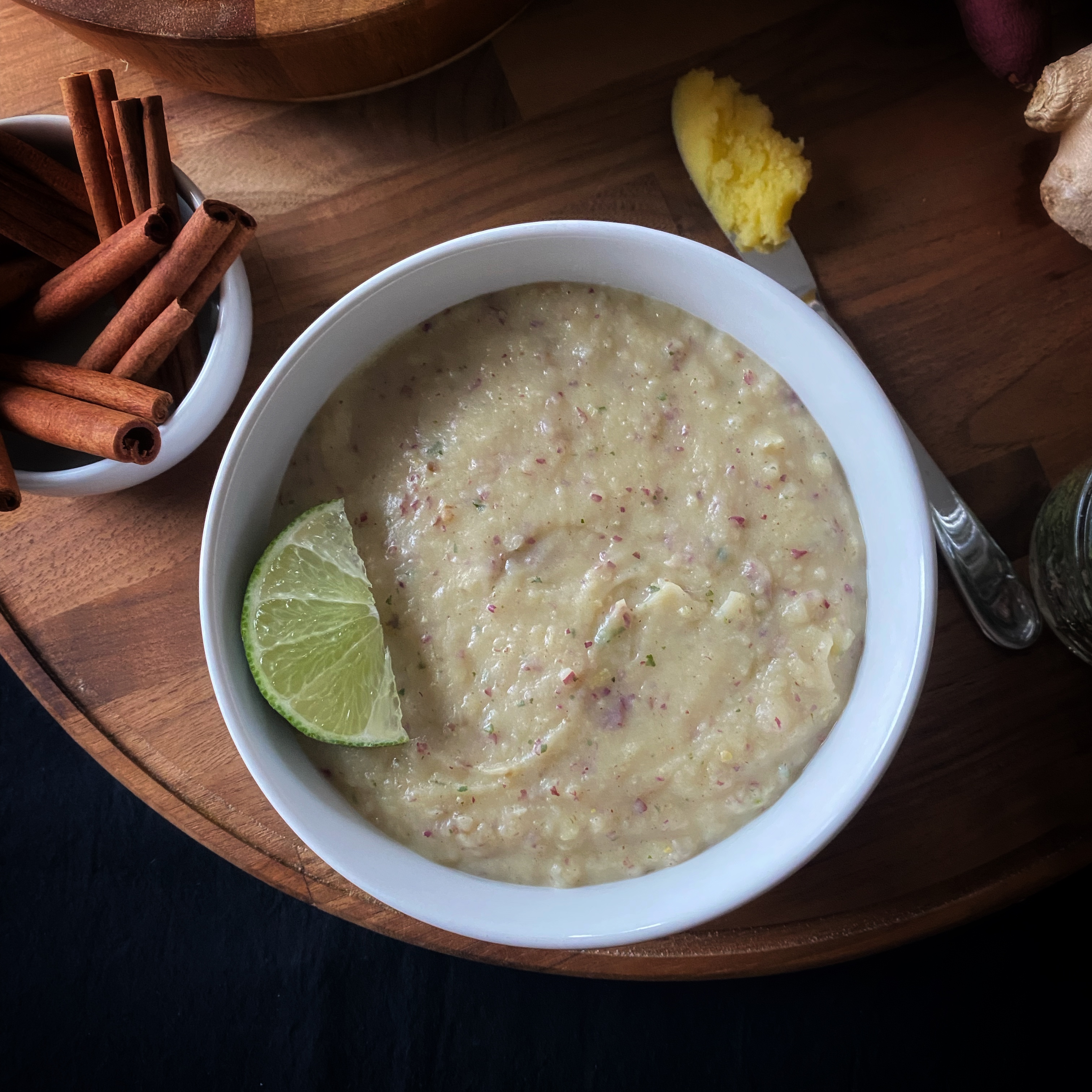 Alright, hear me out. This recipe reminds me of key lime pie. Is it true that I have not had this pie in years, nay decades? Yes. Still, it’s sweet, sour, and hearty from the firm texture of the sweet potato. The fenugreek seeds also add a maple syrup aroma that reminds me of pancakes in the morning. Theoretically, any sweet potato can be used for this recipe, but I highly advise using the Japanese variety. Its flavor blends beautifully with the lime and aromatics. If you are looking for a sweet breakfast or a starchy side dish to have with a meal, give this one a try. This recipe serves one.